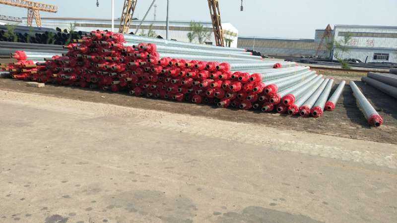 聚氨酯架空保溫管是由金屬保護(hù)管、聚氨脂硬質(zhì)泡沫塑管和鋼管組成。保溫層材料為密度60kg/m3至80kg/m3的硬質(zhì)聚氨酯泡沫,充分添滿鋼管與套管之間的間隙,并具有一定的粘接強(qiáng)度,使鋼管、外套管及保溫層三者之間形成一個(gè)牢固的整體。具有良好的機(jī)械性能和絕熱性能,通常情況下可耐溫120℃通過